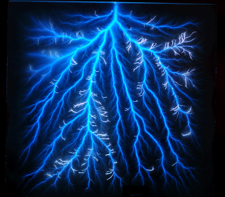| Pictured are Lichtenberg Figures at the moment of their creation, taken by Timothy Koeth, IREAP, and colleagues at UMD. | ![]() Timothy Koeth |